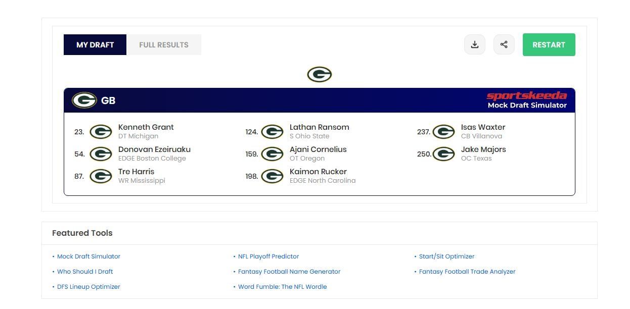 This mock draft has the Packers doubling up on edge prospects after also selecting Ezeiruaku in the second round. Kaimon Rucker is physically gifted and could potentially develop into a rotational pass rusher. This can add value to their defensive roster construction.