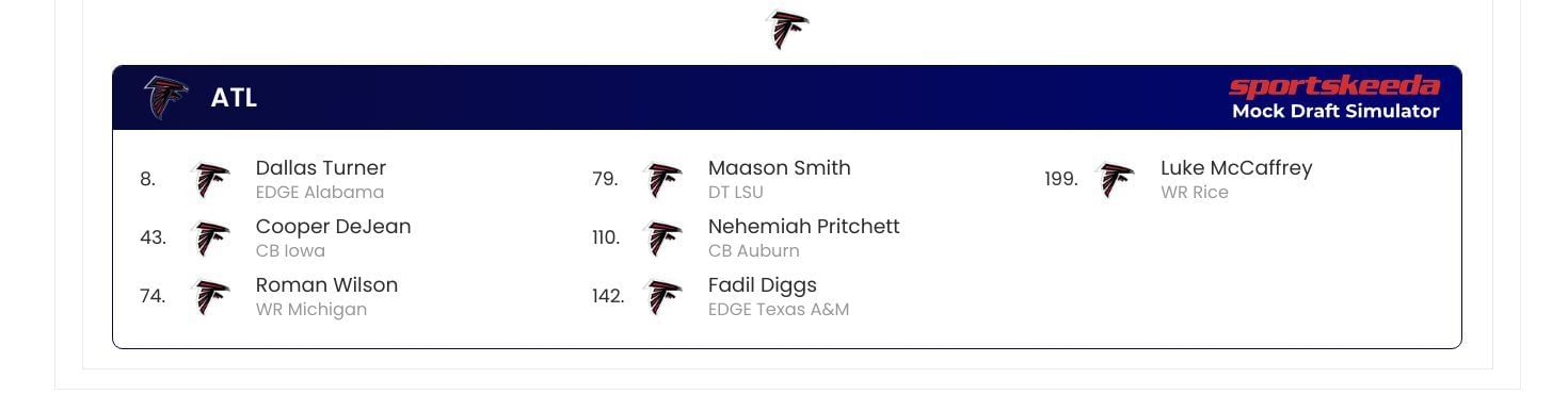 In a recent simulation, here is what the tool projected for the Atlanta Falcons' selections with their seven picks this year: