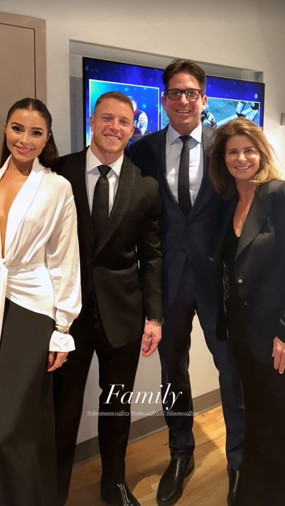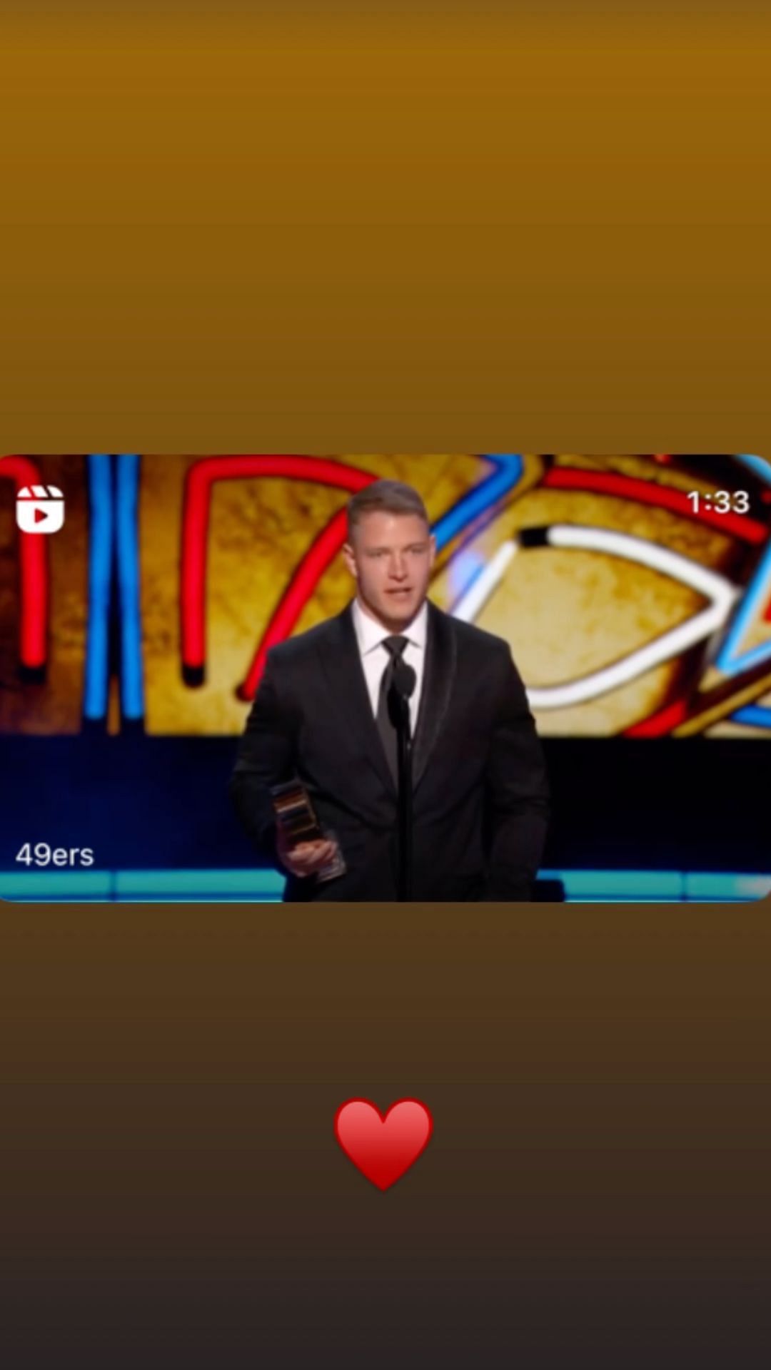 She also shared an Instagram reel to her page from the 49ers featuring McCaffrey with a heart emoji: