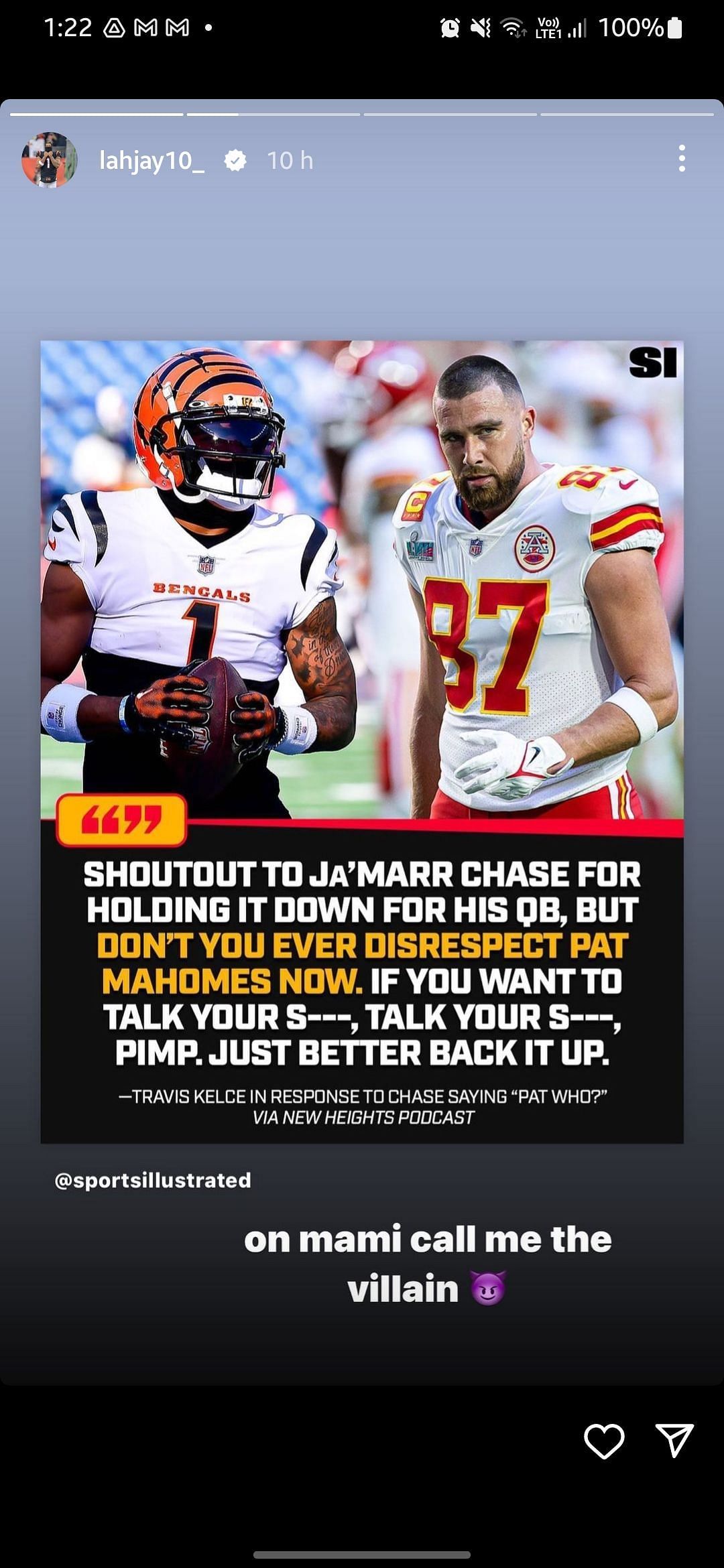 On the "New Heights" podcast, the tight end went off on Chase, and the Bengals star responded back on his Instagram story, saying:
