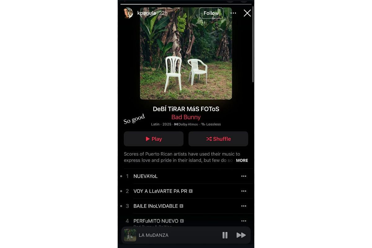 The album, released on Jan. 5 under Rimas Entertainment, translates as “I Should Have Taken More Photos.” It is the sixth solo studio album and seventh overall release from the Puerto Rican artist, following his 2023 record “Nadie Sabe Lo Que Va a Pasar Mañana.”