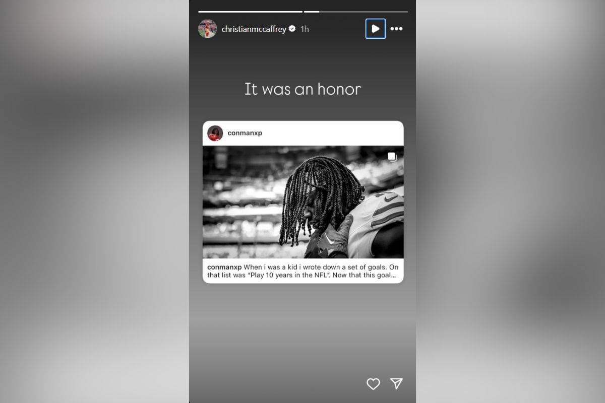 After Conley posted a heartfelt note about calling it quits on Instagram, 49ers running back Christian McCaffrey reposted it on his Instagram story and paid tribute to the WR.