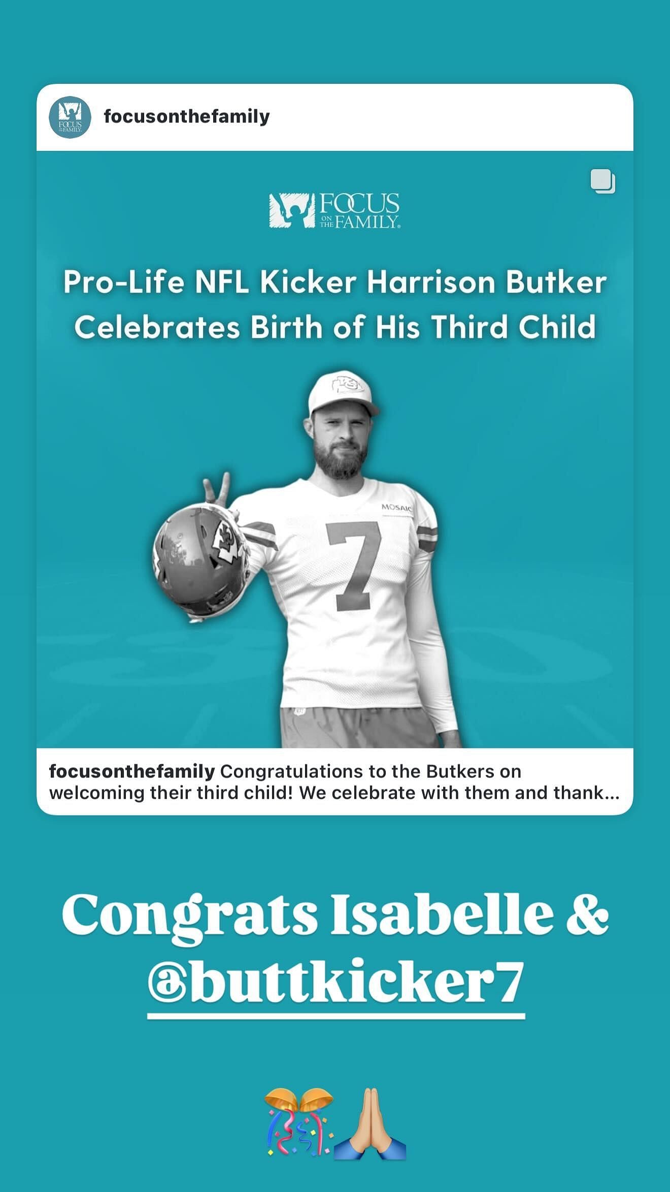 Harrison Butker celebrated a major milestone as he and his wife Isabelle welcomed their third child. The Kansas City Chiefs kicker revealed the development on an episode of Fox's "The Ingraham Angle."