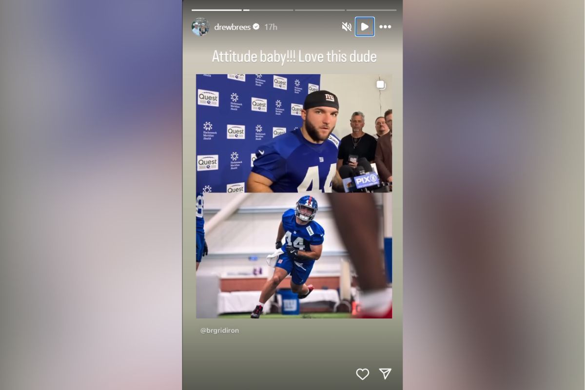 Former New Orleans Saints quarterback Drew Brees was impressed with Skattebo's comments and relayed them on his Instagram story.