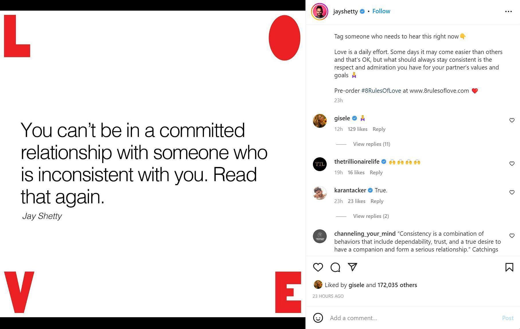 Known to endorse yoga and spirituality, Bundchen recently commented on a quote by author Jay Shetty. The quote was: