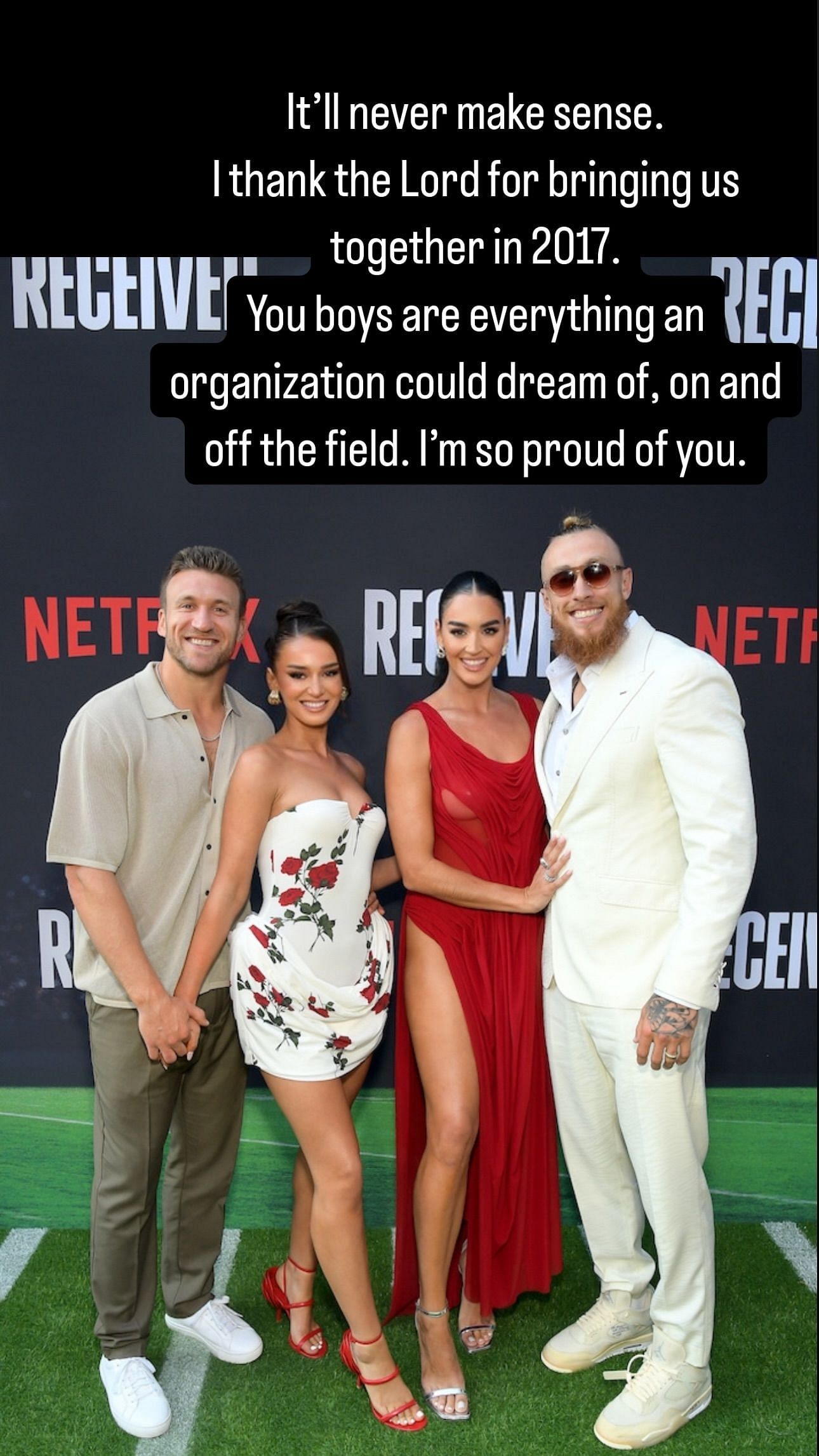 Meanwhile, the tight end posted this image of himself and Juszczyk practicing during their rookie season on his own Instagram Stories: