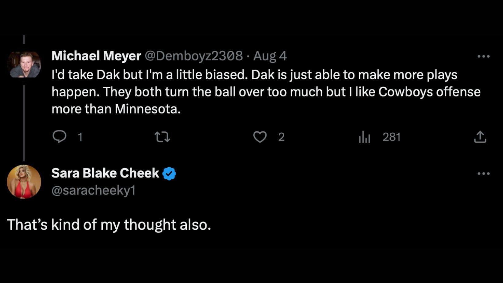 A fan chimed in on a question that asked whether Prescott or Kirk Cousins was the better signal-caller. He leaned toward Prescott but added both are turnover prone.