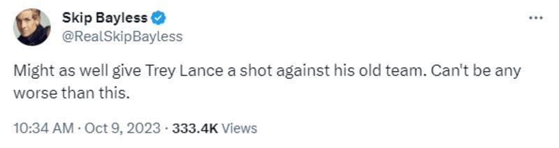 “Might as well give Trey Lance a shot against his old team. Can't be any worse than this.”