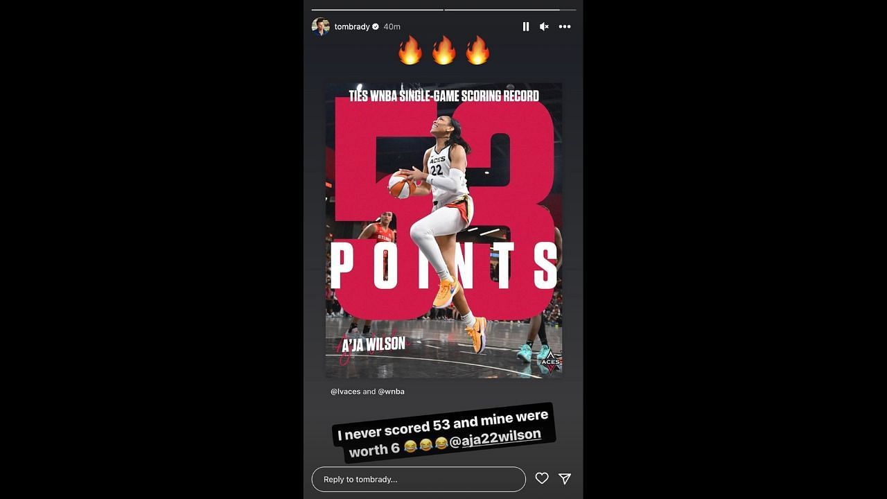 Tom Brady, new minority owner of the Las Vegas Aces, congratulated the star player A'ja Wilson after a record-tying perfomance. The superstar WNBA player was in rare form recently, posting a stunning total of 53 points in one game. That's tied for the most in a WNBA game ever.