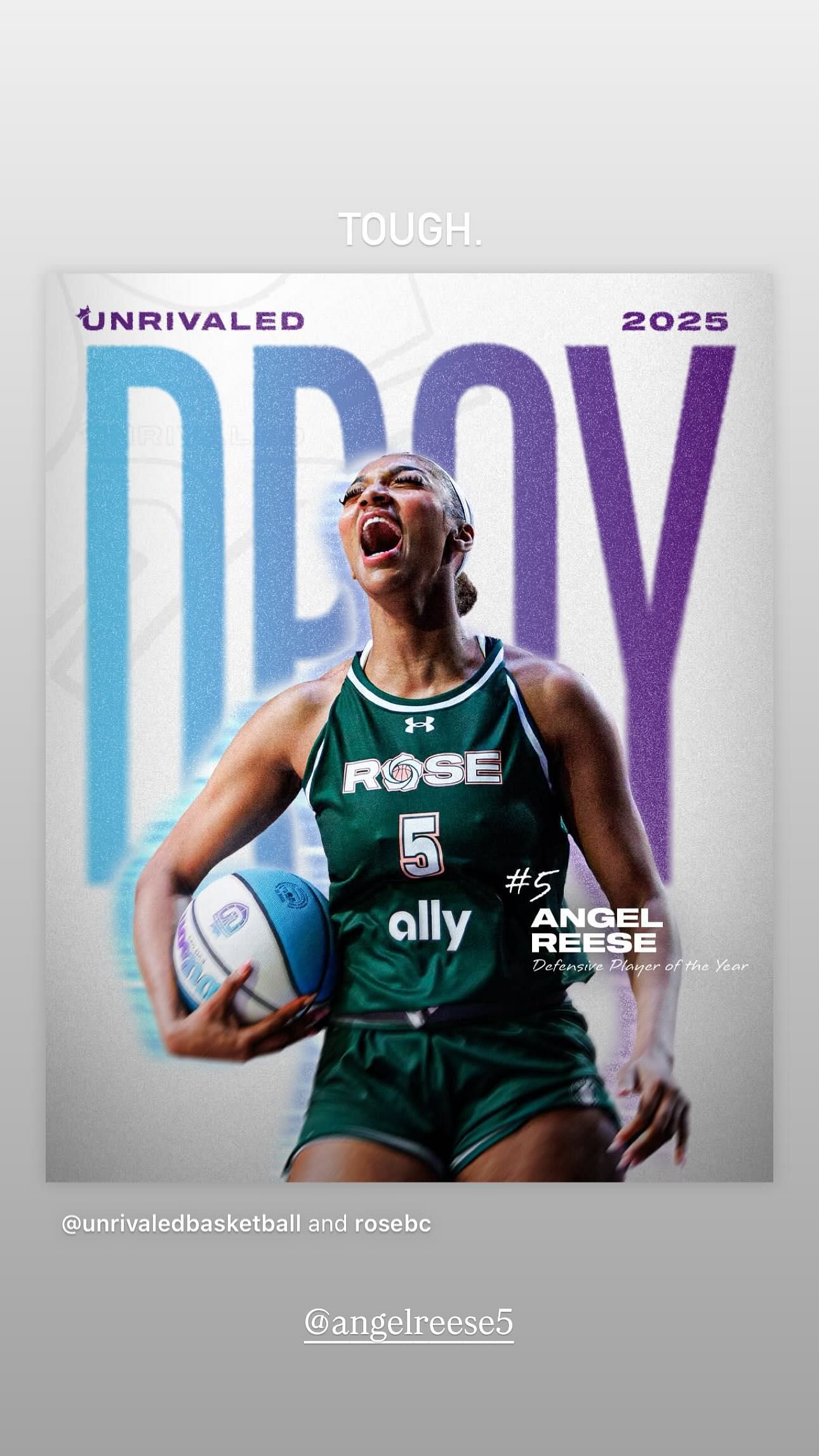 Angel Reese, the Chicago Sky's star guard, was named the Defensive Player of the Year by Unrivaled, a women's professional 3x3 league founded in 2023 and now in its first season of play. Kayla, the influencer, wrote on an Instagram Story:
