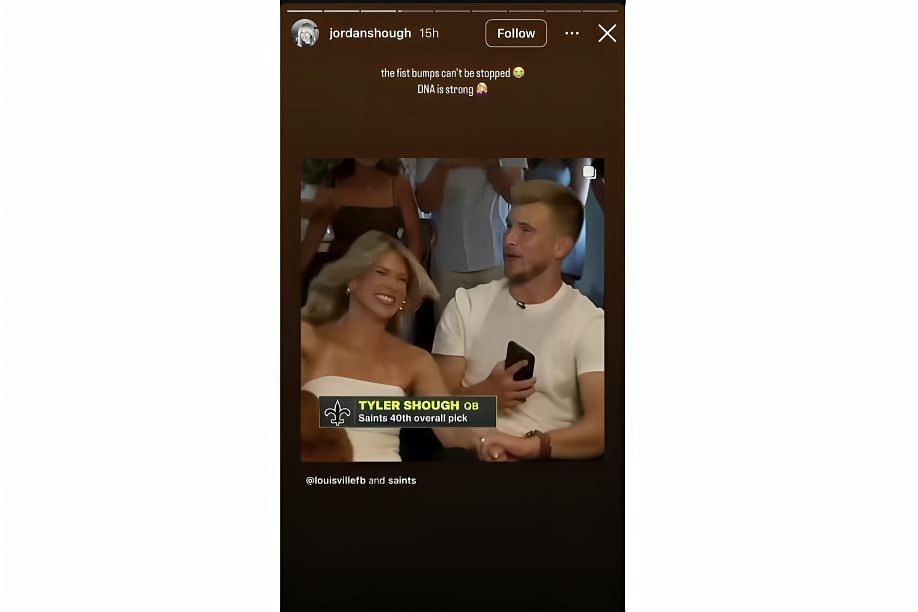 On Saturday, Jordan Shough shared a clip on his Instagram story after her husband, Tyler Shough, was picked at No. 40 by the New Orleans Saints. She highlighted their shared competitive spirit.