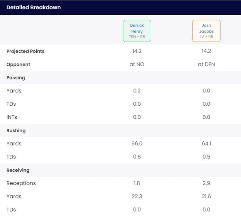 Per Sportskeeda’s Start/Sit Optimizer, you can’t go wrong in selecting Derrick Henry or Josh Jacobs. They are projected to have 14.2 fantasy football points each in Week 1, with Henry predicted to finish with 66 rushing yards, 22 receiving yards, and a touchdown.