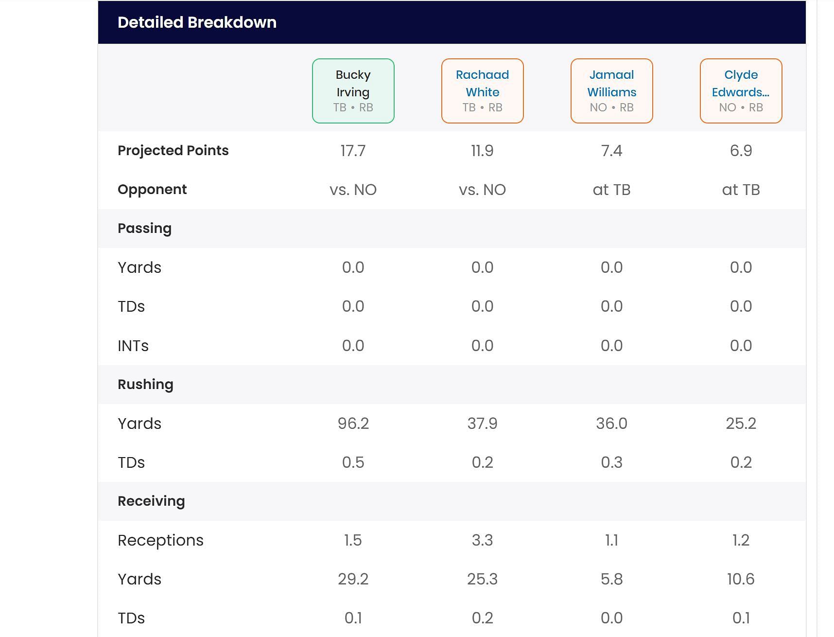Week 18 Tampa Bay Buccaneers vs New Orleans Saints fantasy picks