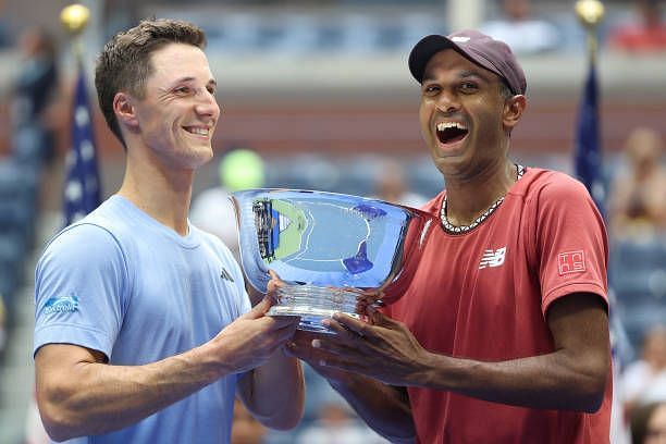 A. Rajeev Ram and Joe Salisbury have been together for five years on tour. The former revealed this during his US Open 2023 trophy presentation.