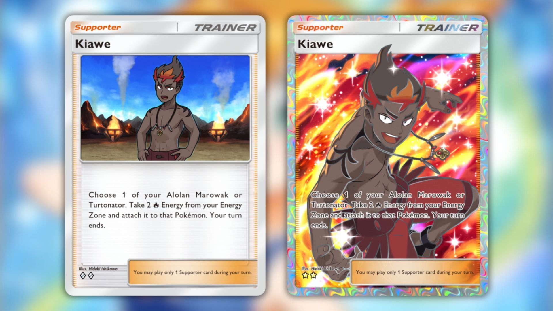 Though a niche pick, Kiawe is a powerful turn-one setup card for Fire decks. It lets you attach two Fire Energy from your Energy Zone to either Alolan Marowak or Turtonator, ending your turn.