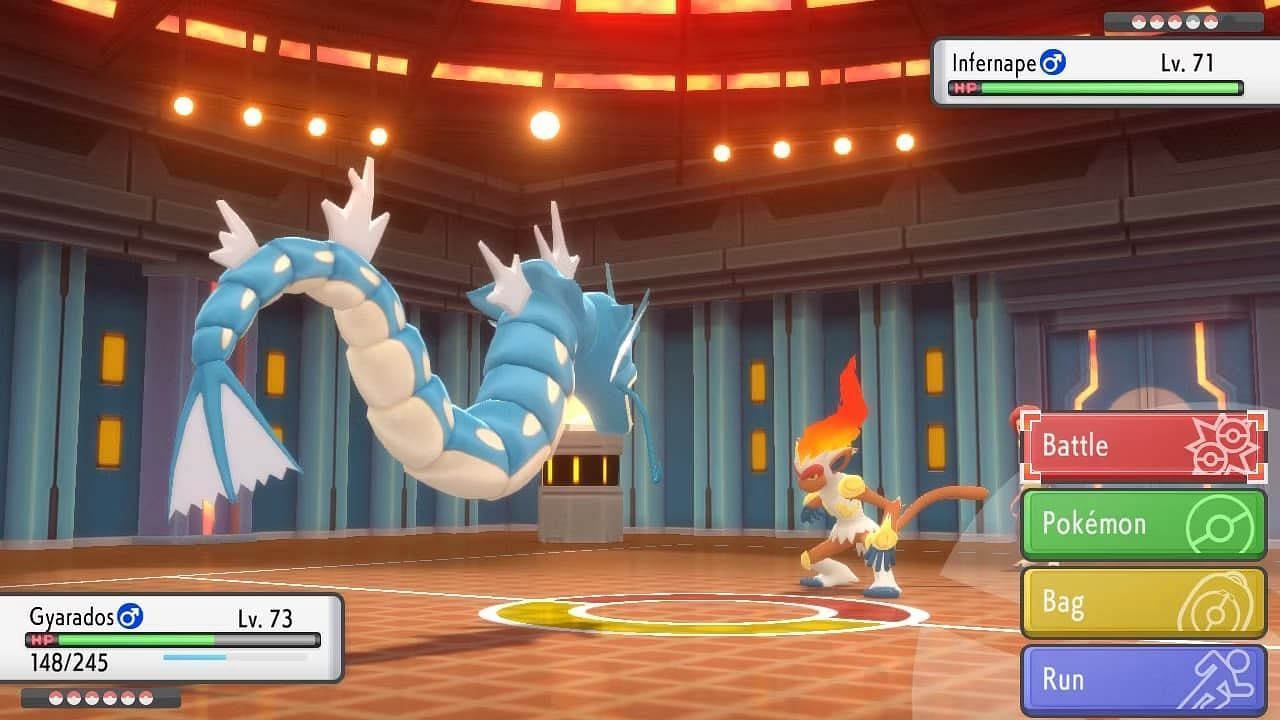 Gyarados makes for a great backup, with Infernape at the front of the pack. It is resistant to both Fighting and Fire-type moves. It also has Intimidate, which lowers the Attack of the opposing Pokemon in battle.