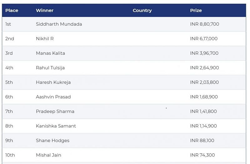 For the 10k Freezeout event, there were a massive 437 entries, with each of them paying 10k entry. The total prize pool of INR 43+ Lakh will be split among the top 52 players. The spectrum is wide, running from the minimum cash value at INR 19,100, to a whopping winning prize money of INR 8,80,700.