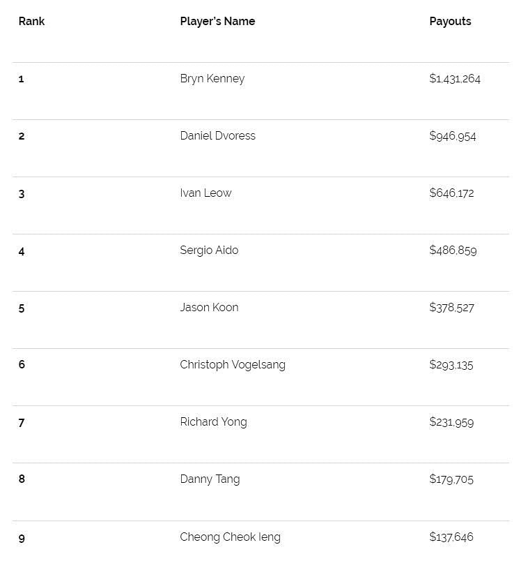 He won the title along with a whopping prize money of $1,431,264. Dvoress, on the other hand, had to settle for the runner-up position that awarded him $946,954 in prize money. Kenney has already climbed into the highest echelons of USA's all-time money list and this win will only make his case stronger moving forward.