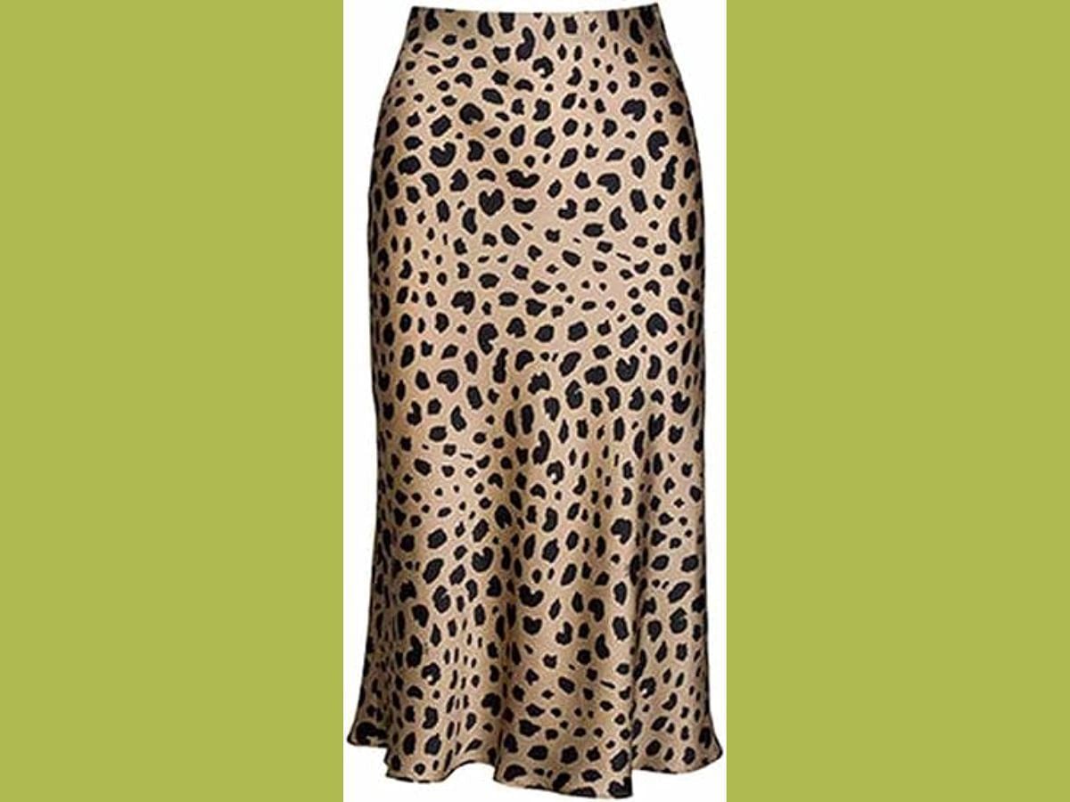 This skirt was made from a high-quality silk and polyester material. It features a leopard print and a midi length. The skirt is perfect for any occasion be it formal or casual. It should be hand washed or gently machine cold washed. It sells for $20.79 on Amazon.
