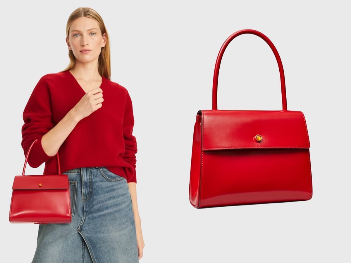Red will always be in fashion, as evidenced by the Spring-Summer Fashion Shows of September, and the Tory Burch bag has all the qualities of an everyday bag. The bag embodies sophistication and chic with its ladylike top handle and simple design, but its exquisite cabochon button clasp and firm, structured handle detailing catch the eye.