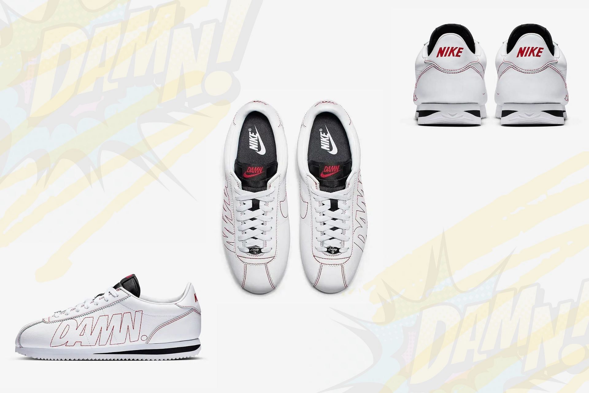 It retained the Cortez's iconic black and white colorblocking but added red thread embellishments, swapped out the lateral swoosh for a massive embroidered "DAMN" emblem, and changed the tongue branding. Lamar made a bold move by joining the Nike squad, as he had no intention of slowing down anytime soon.
