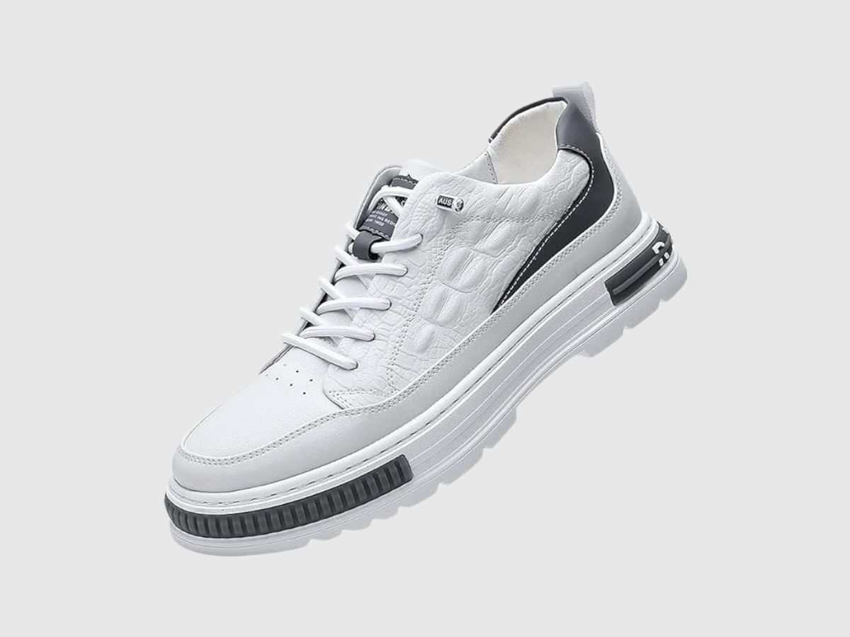 These fashionable shoes are dressed in a clean and crisp white waterproof cowhide leather, alongside a breathable mesh material, ensuring flexibility and breathability.