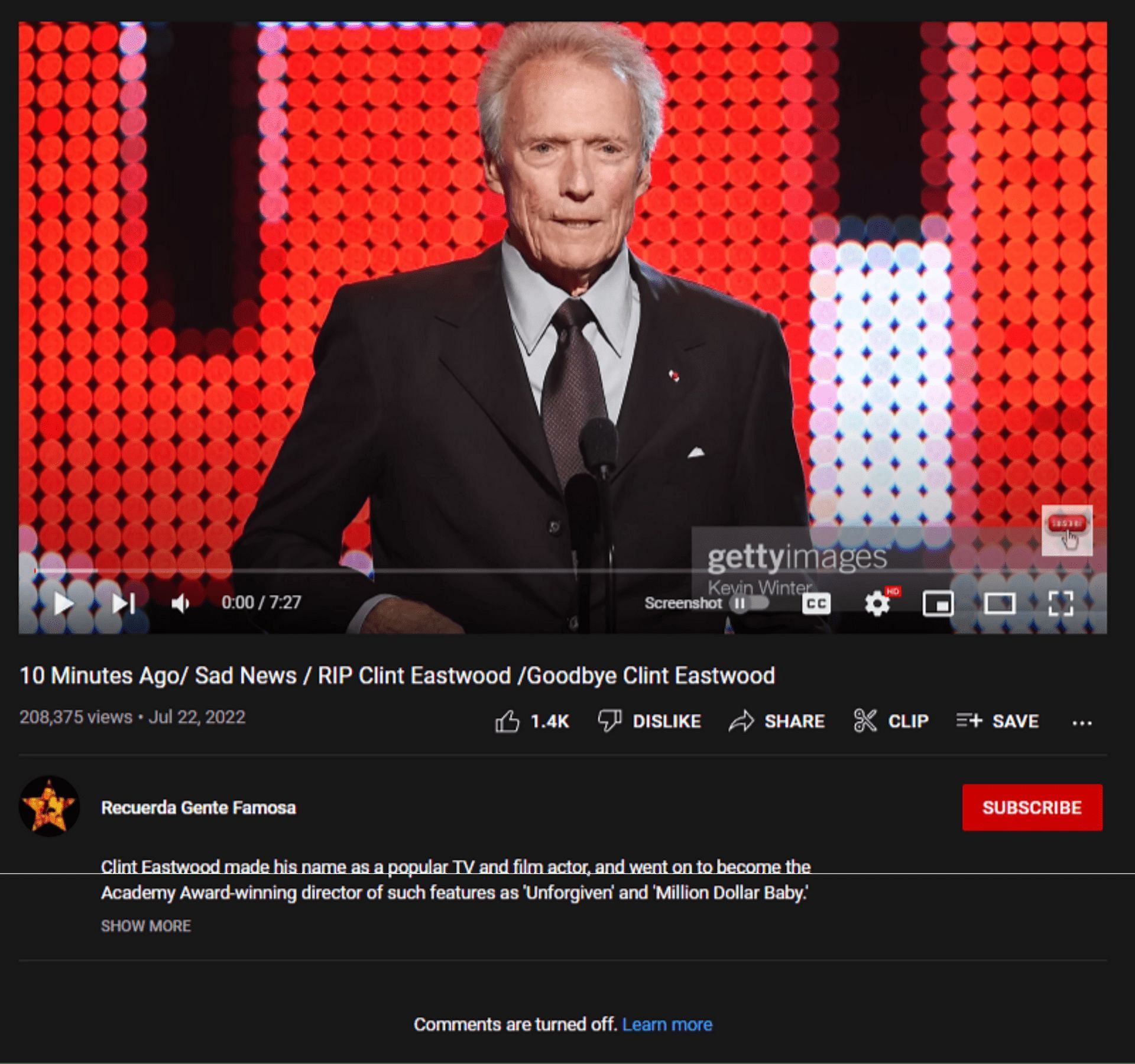 Unsurprisingly, the claims are barely mentioned in the video and are not backed by any factual information. The video ends abruptly while talking about Eastwood's life and achievements. Like most videos containing fake information, the aforementioned one also contained an AI speech generator that narrated the actor's life in a robotic and monotonous voice.