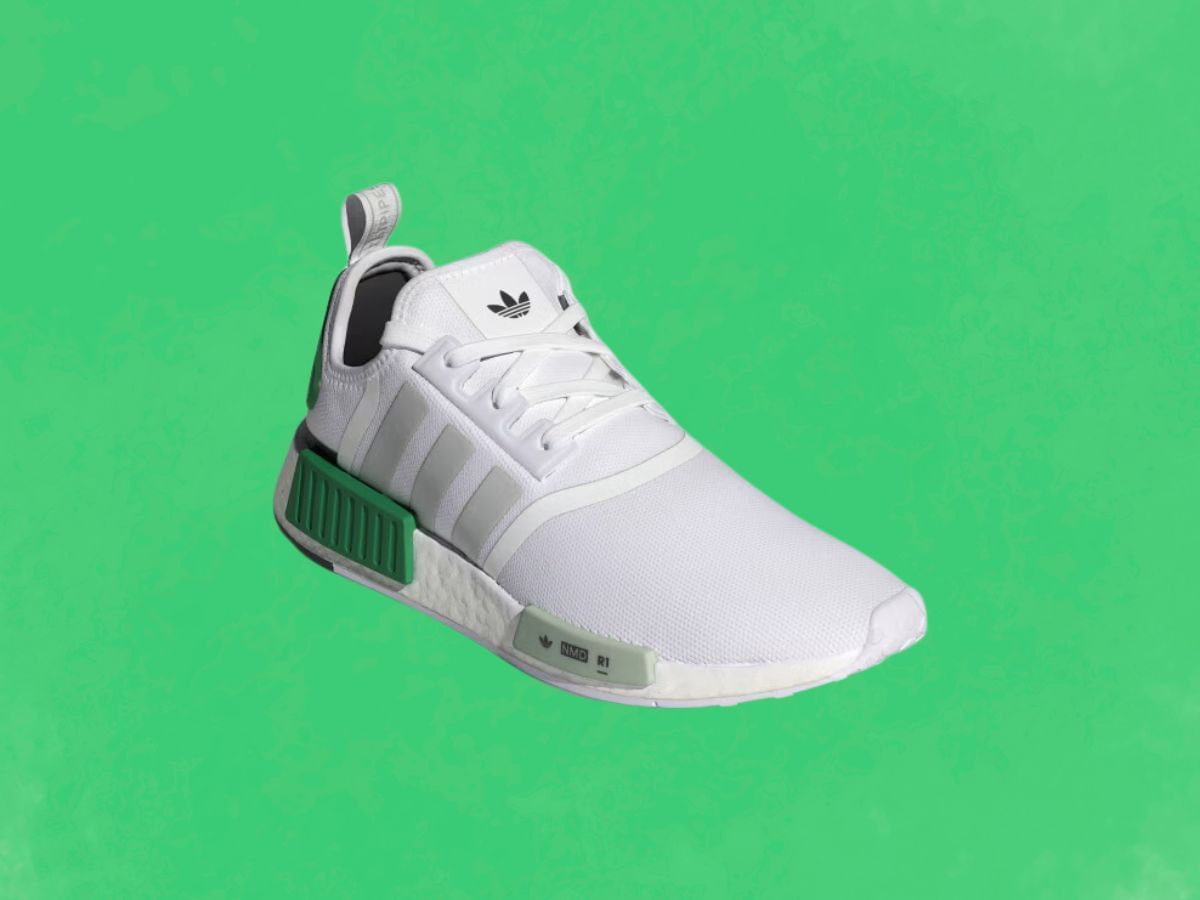 This sneaker silhouette comes in a white colorway with brushes of green and chalk white. This updated '80s runner is crafted from a knit textile material and features a snug and stretchy fit, a BOOST midsole, a rubber outsole, and a lace closure.