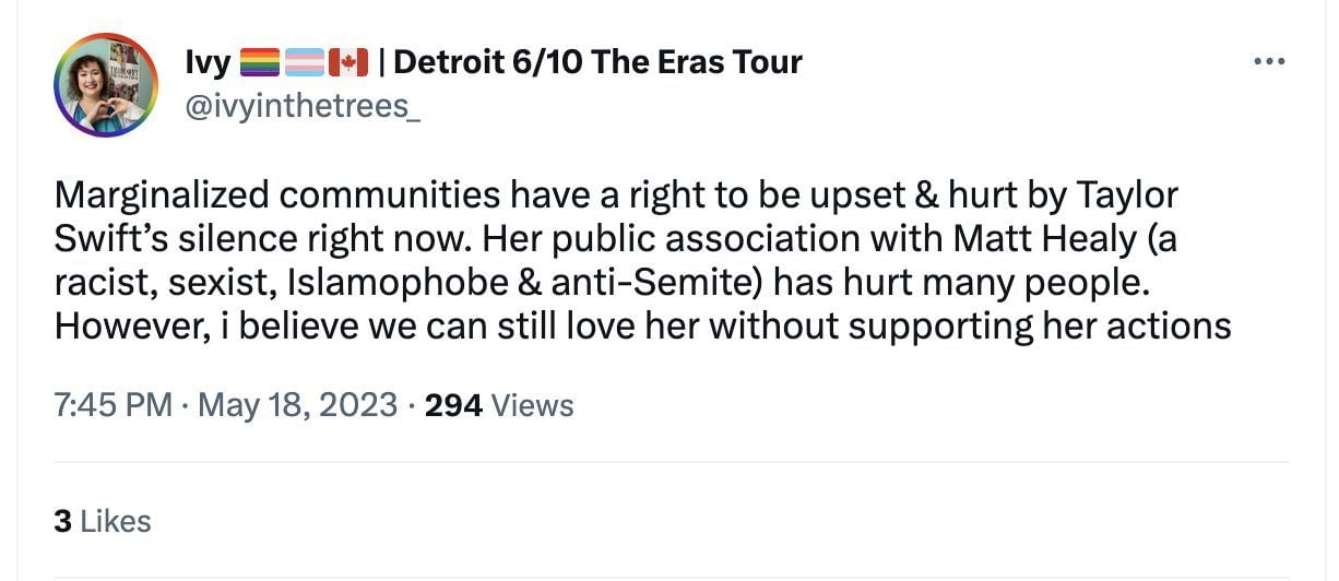 While some social media users said that they were glad Swifties weren't supporting Healy at all, others slammed the singer.