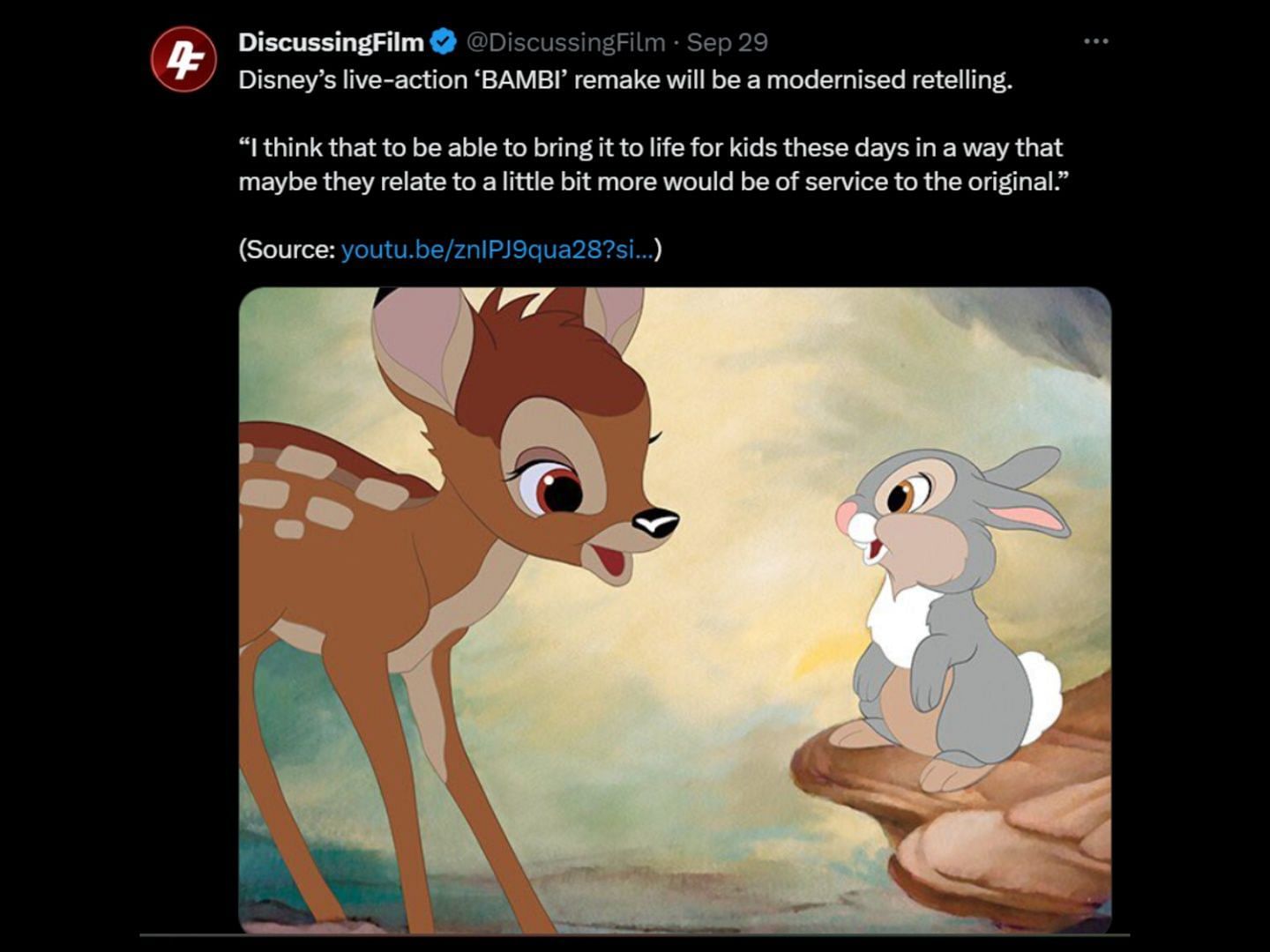 Disney’s upcoming live-action remake of Bambi received criticism after the writer revealed that the film would have a modern twist to the plot. The film's writer, Lindsey Anderson Beer said on September 26, 2023, that the plot would have a twist to make the film less traumatizing for children to watch. The film was announced in January 2020 and is still in its early development.