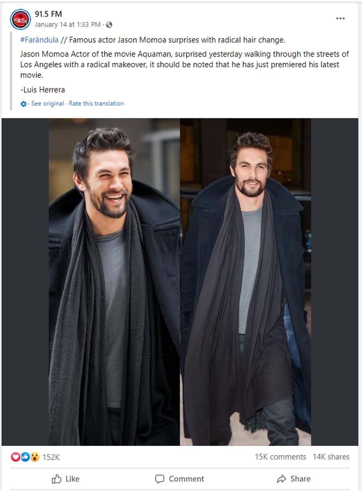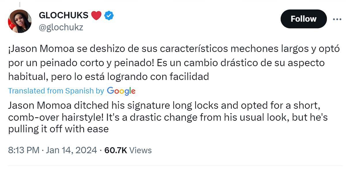 The original Facebook post with Jason Momoa's alleged haircut went viral with over 15k comments and over 151k likes. It was soon shared on other social media platforms, including X.