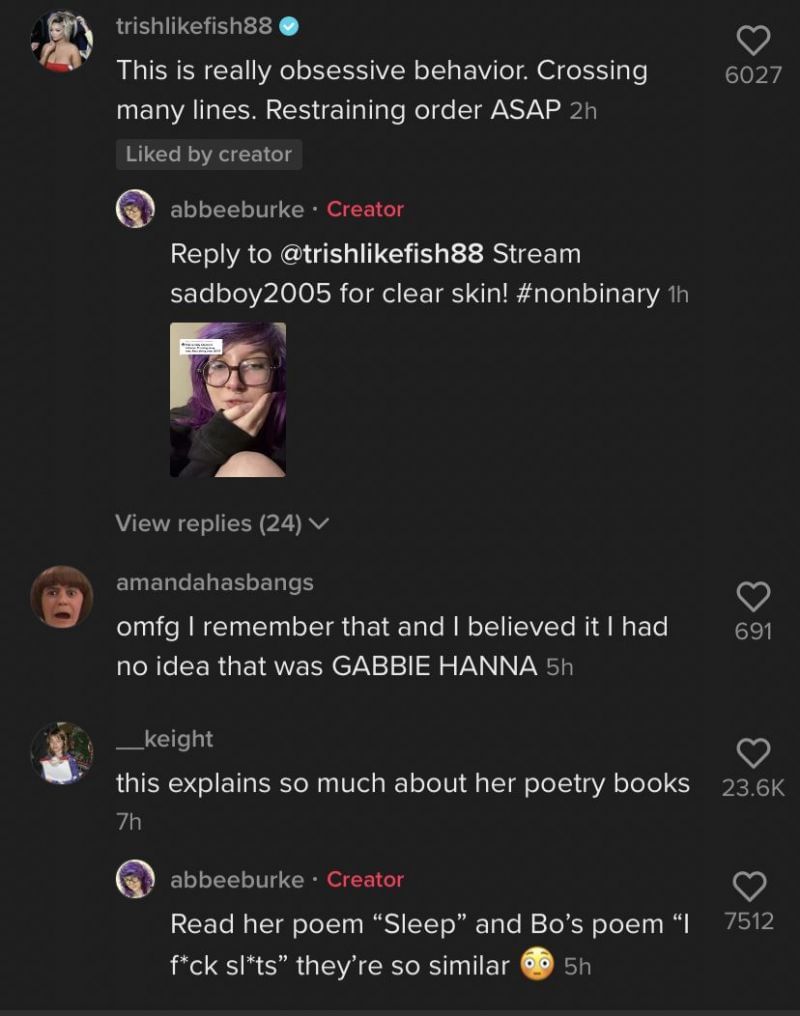 TikTok and Twitter users took to the comments to express their frustration surrounding the recent and continuous drama happening to Gabbie Hanna.
