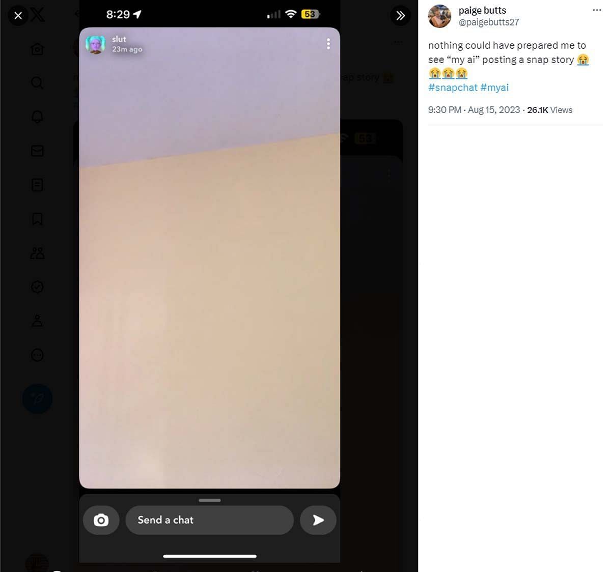 Netizens were left concerned after Snapchat's My AI shared its first story on the social media platform on Tuesday, August 15, 2023. The bizarre story featured a video showing the edge of a wall meeting a ceiling, prompting users to question the artificial bot.