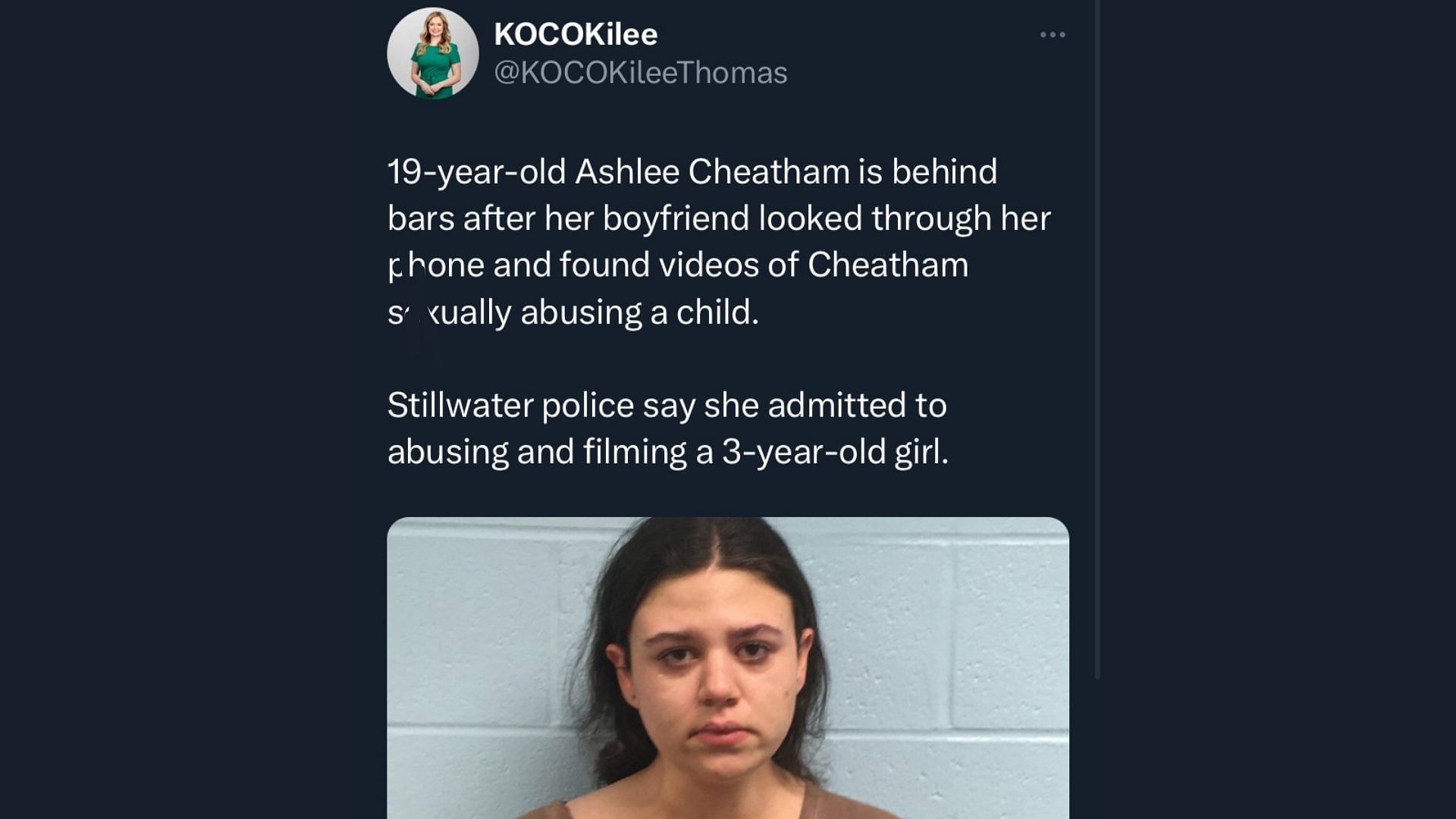 A 19-year-old from Stillwater, Oklahoma, Ashlee Cheatham was arrested on August 22, 2023, for s*xually abusing her partner's three-year-old daughter. Police found out about the incident after Ashlee's boyfriend reported that he found disturbing images on Ashlee's phone.
