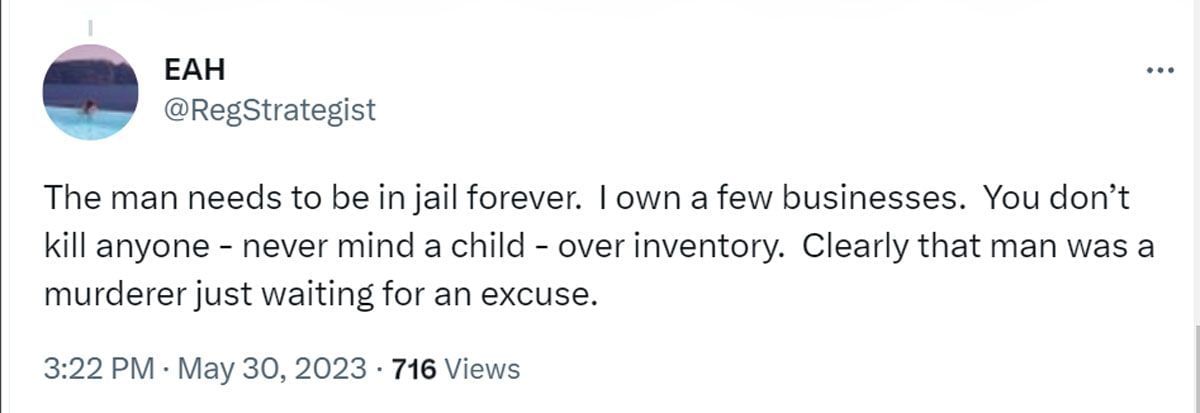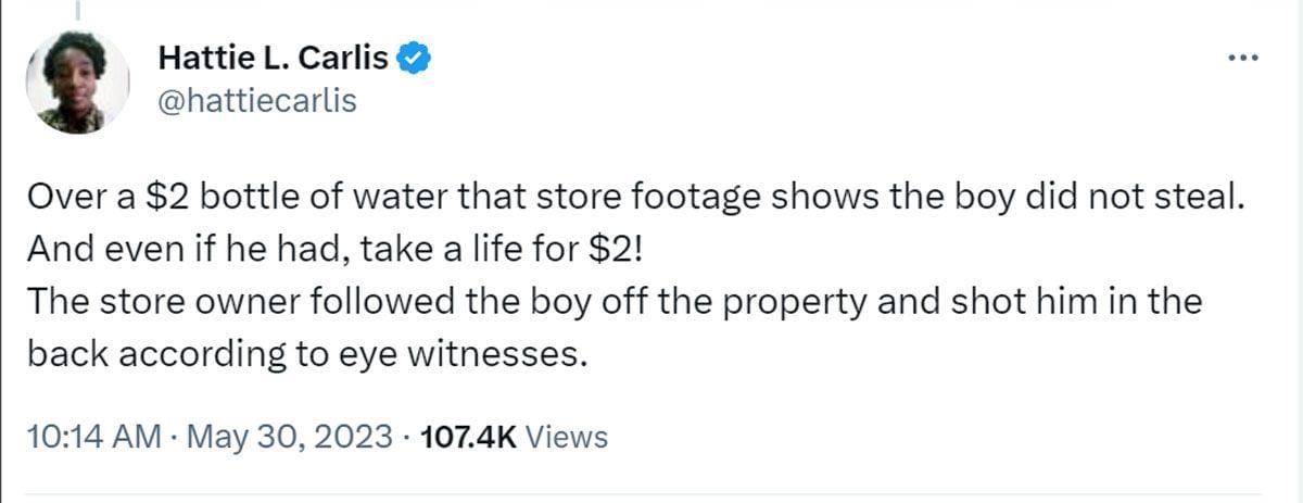 According to eyewitnesses, the pair got into an altercation that resulted in the juice box falling that Harlins picked up, placed on the counter, and proceeded to leave. However, she was fatally shot by the owner. No evidence of shoplifting was found upon investigation.