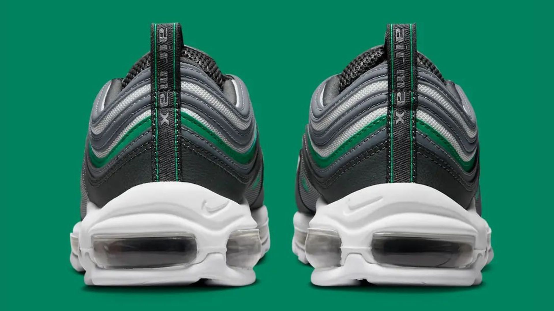 Nike Air Max 97 "Cool Grey Stadium Green" shoes are combined with black and white hues