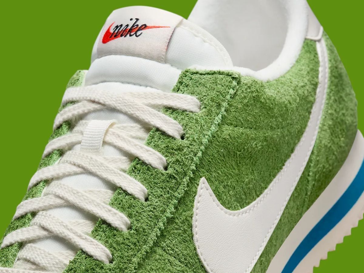 The Nike Cortez has journeyed over five decades, transitioning smoothly from a track legend to a streetwear staple. Its most recent iteration showcases an all-over hairy suede detailing, dyed in an enchanting grassy green shade, reminiscent of a lush, overgrown meadow.