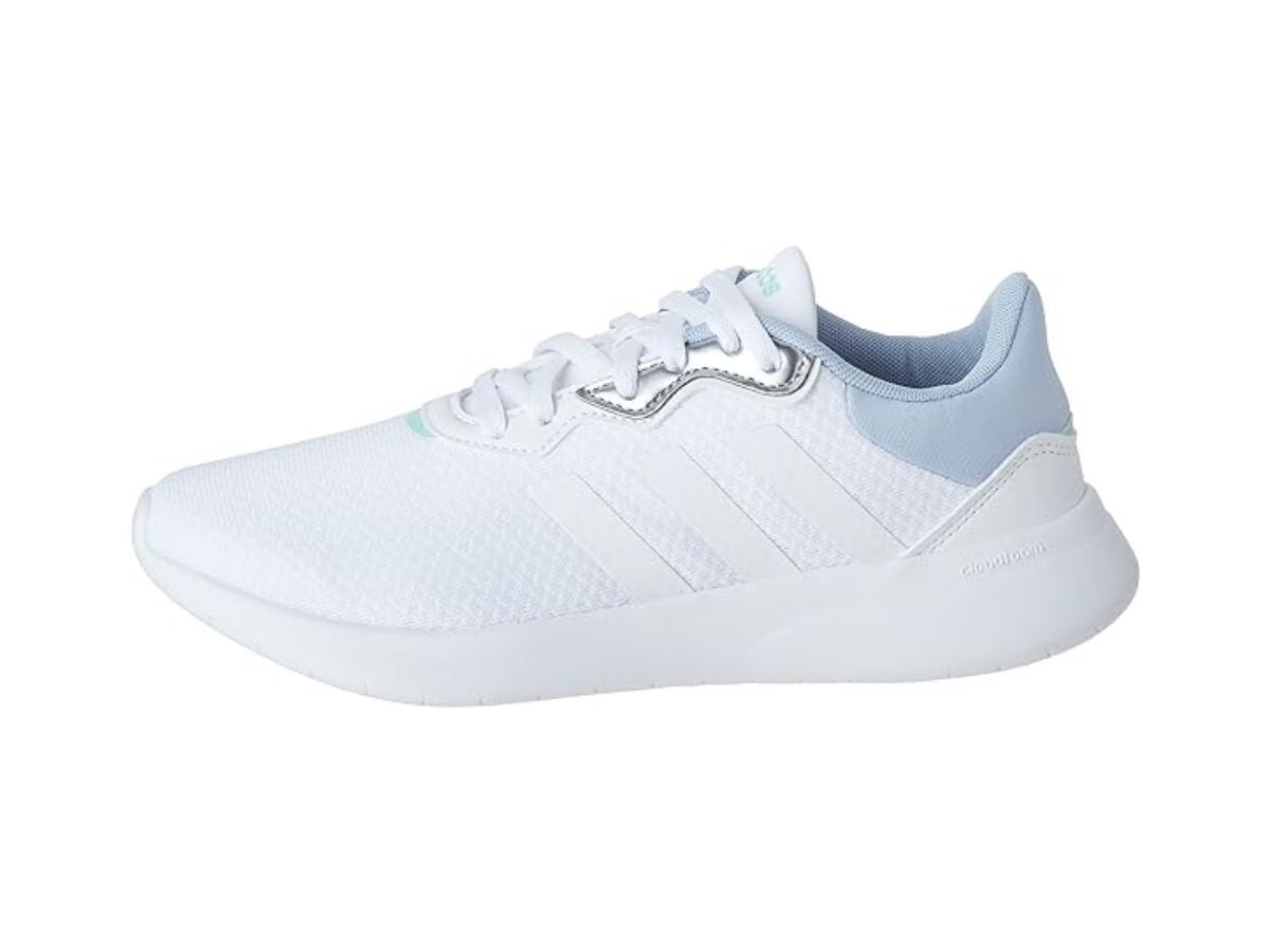 These sporty shoes come in an all-white colorway accented by unique silver eyelets and the baby blue heel tab, making them versatile and fashionable in the same vein. The shoes feature a cloud foam midsole and lace-up closure for a snug fit. The shoes' qualities are highlighted by their lightweightness to ensure the wearer spends long hours in the gym without feeling uncomfortable.