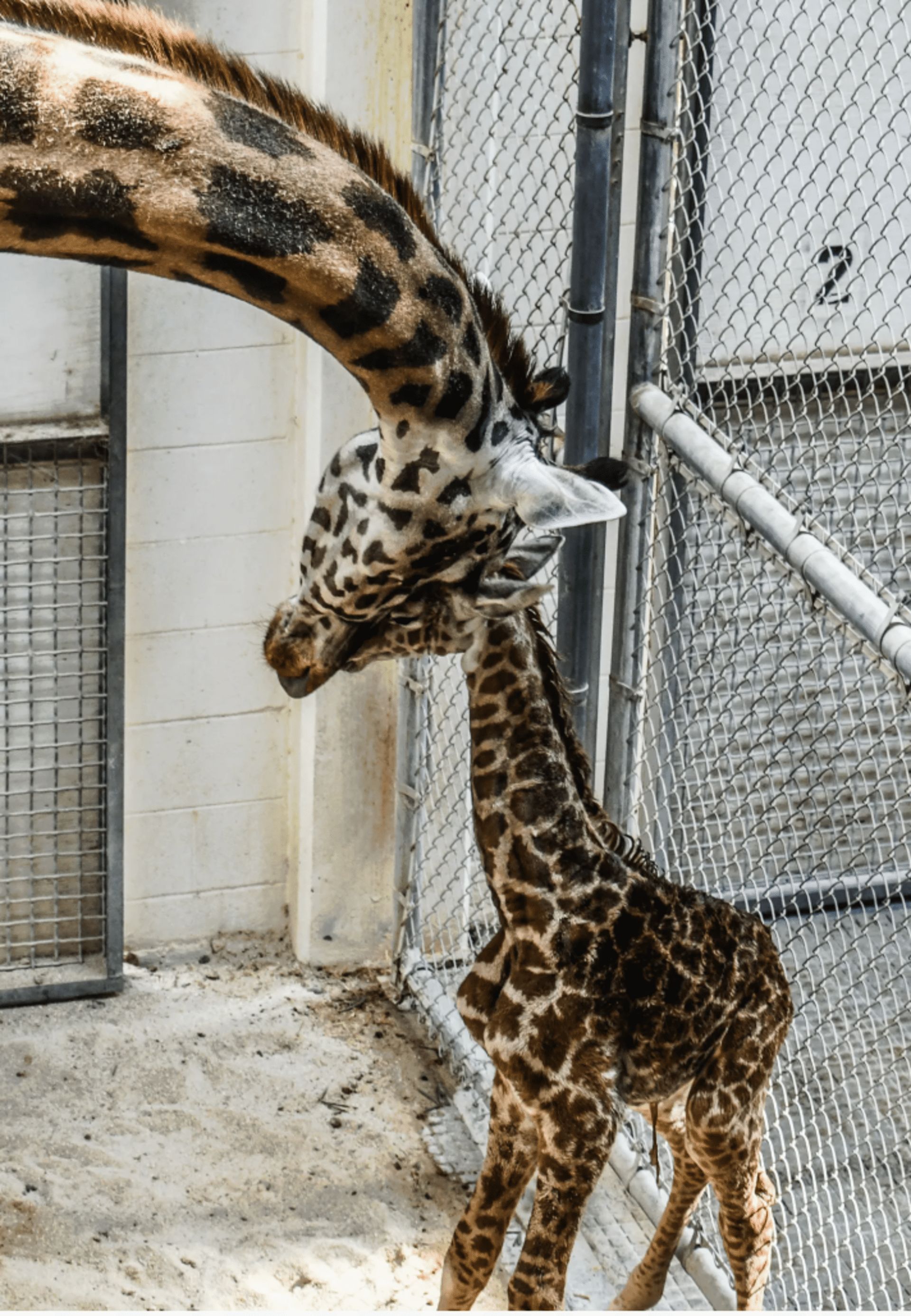 “Zoo visitors experienced the unexpected this morning in the Zoo’s giraffe barn: Imara, the giraffe, gave birth to her ninth calf. Shortly after birth, the calf was able to stand and was seen nursing. Keepers are keeping a close eye on mom and cald will be coordinating a neonatal exam with the Zoo’s veterinary team to assess the calf’s health and determine the sex.”