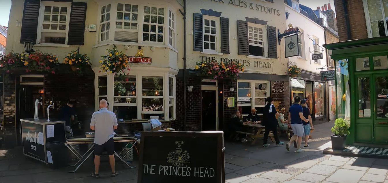 It is notable that the show opted to alter the signage to reflect "Crown and Anchor" instead of the original "The Prince's Head," with the latter being concealed on the wall.