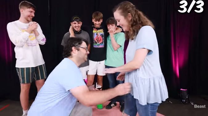 Another challenge had three fans who had to stand below different buckets. One of the buckets had $10,000 in cash, while the others had mustard and slime. Further, we saw a challenge where a fan was asked to lay out the room with as many cups as he could in one day.