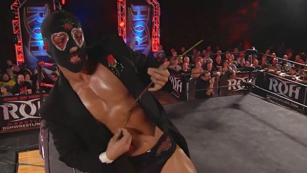 Rhett Titus had been forced to 'retire' from ROH after his SCUM faction lost their match, and returned shortly after as The Romantic Touch. Mostly an enhancement talent, he was in an interesting angle with Veda Scott, who seemed to be the only one--other than the fans, of course--who realized Rhett Titus was the man under the mask.