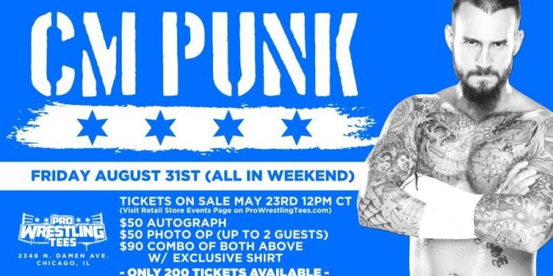 As you all may know, CM Punk is scheduled to appear for a Meet & Greet on 31st August. The Meet & Greet would take place in the Pro Wrestling Tees store in Chicago. Now, Pro Wrestling Tees is also sponsoring the ALL IN event so although it’s being said that there’s no chance that CM Punk would appear at ALL IN, do expect him to show up in some capacity.