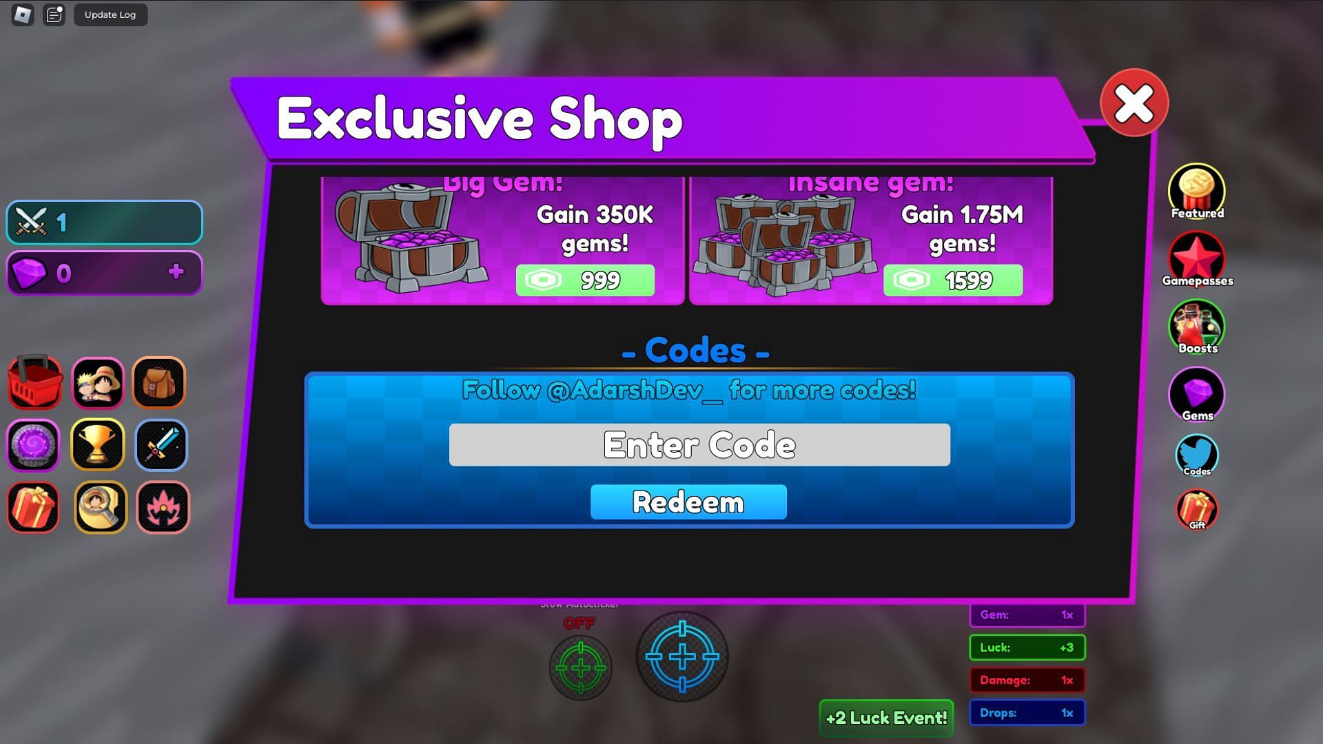 The code "1kConcurrent" grants you free two Strength Potions, two Gem Potions, two Drops Potions, two Luck Potions, and five Slayer Mark Tokens, making it ideal for acquiring rewards.