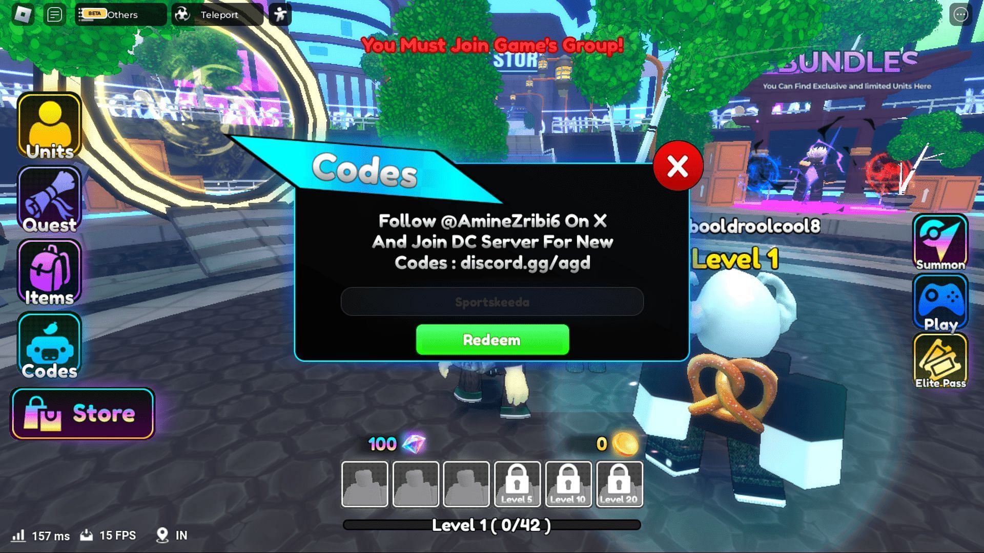 - Launch Anime Protectors Defense and ensure you're connected to the server and have joined the game's official Roblox group.