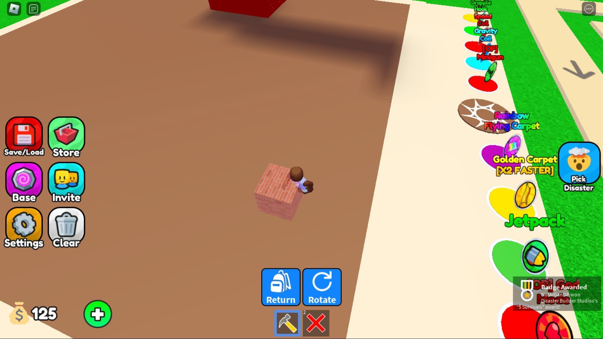 Once Robloxians load into the game, they will spawn into the world with no cash and a building space will be allotted to them with their in-game name on the nameplate. If lucky, they'll spawn in before a disaster has started and have time to prepare for it, but if they aren't, they will spawn in an ongoing disaster and must think fast to adapt and survive.
