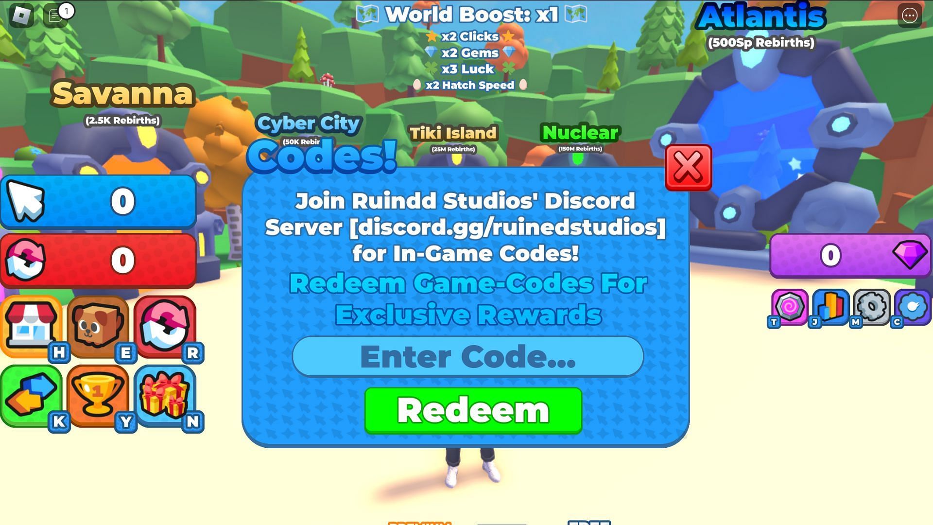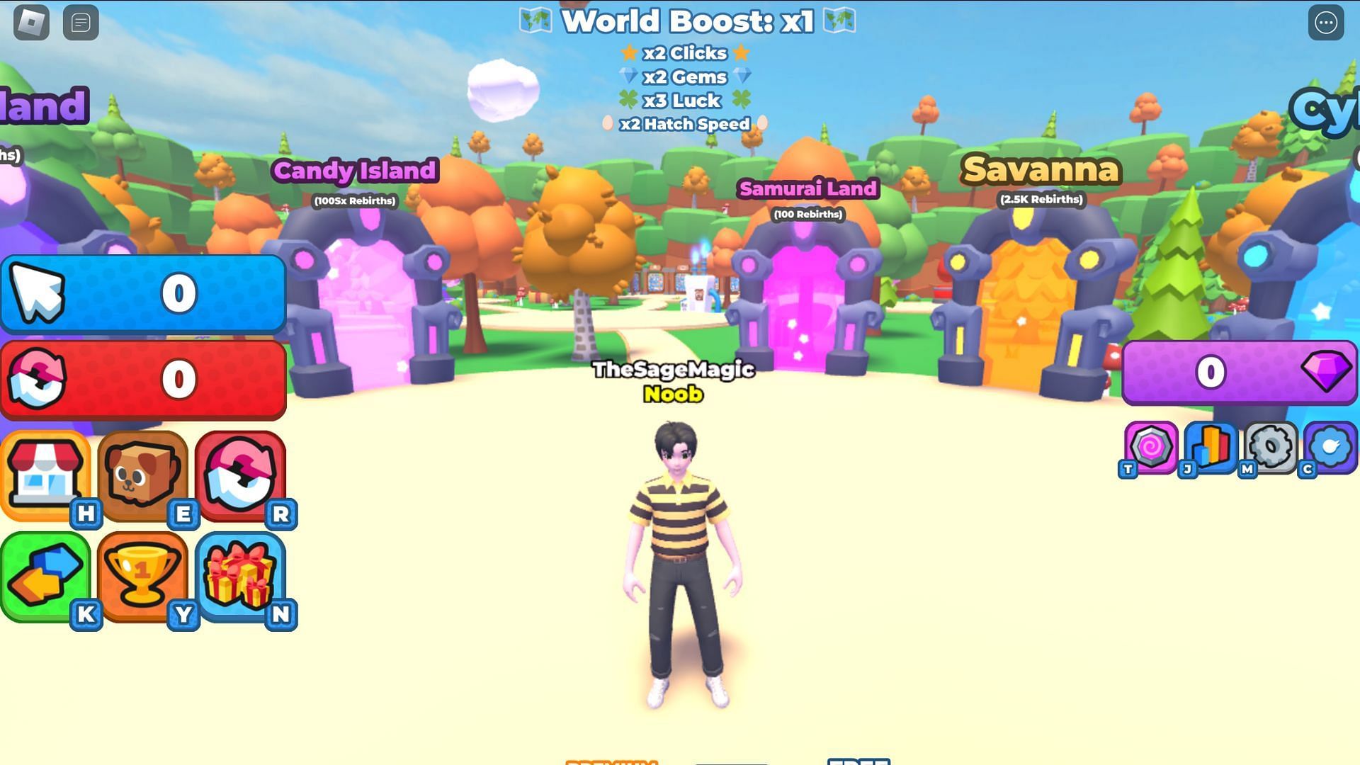 You get a few potions and other important in-game items with the codes. Potions can briefly increase your tap earnings, gem collection, rebirth count, and luck. Clicks can buy pets and add them to your collection. Gems, on the other hand, can be used to buy various upgrades like inventory storage, walkspeed, and a few others. With a higher rebirth count, you can enter other worlds in the game, like Samurai Land, Atlantis, Magic, etc.