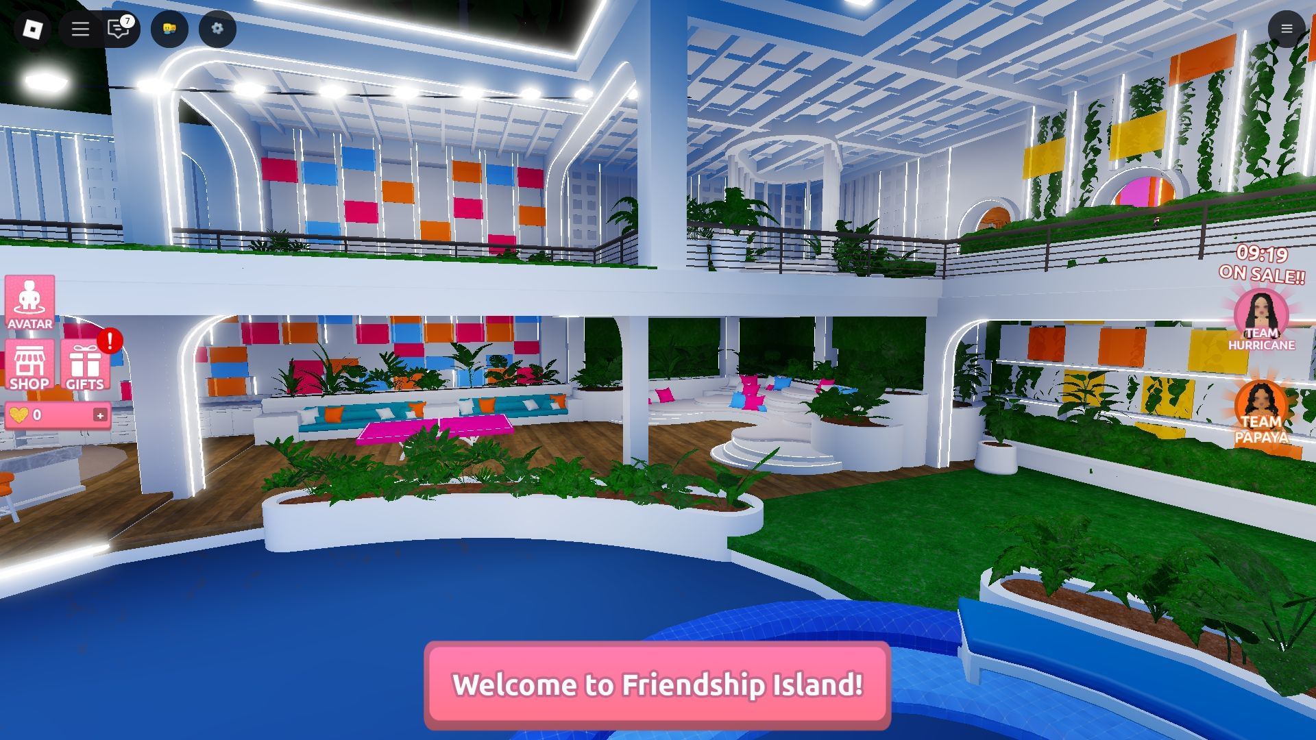 Friendship Island starts by placing all players on the server in a group and having them chat amongst each other for 30 seconds. After that, the game takes on a round-based format, where each pair of friends faces various challenges to earn Hearts, the main currency.