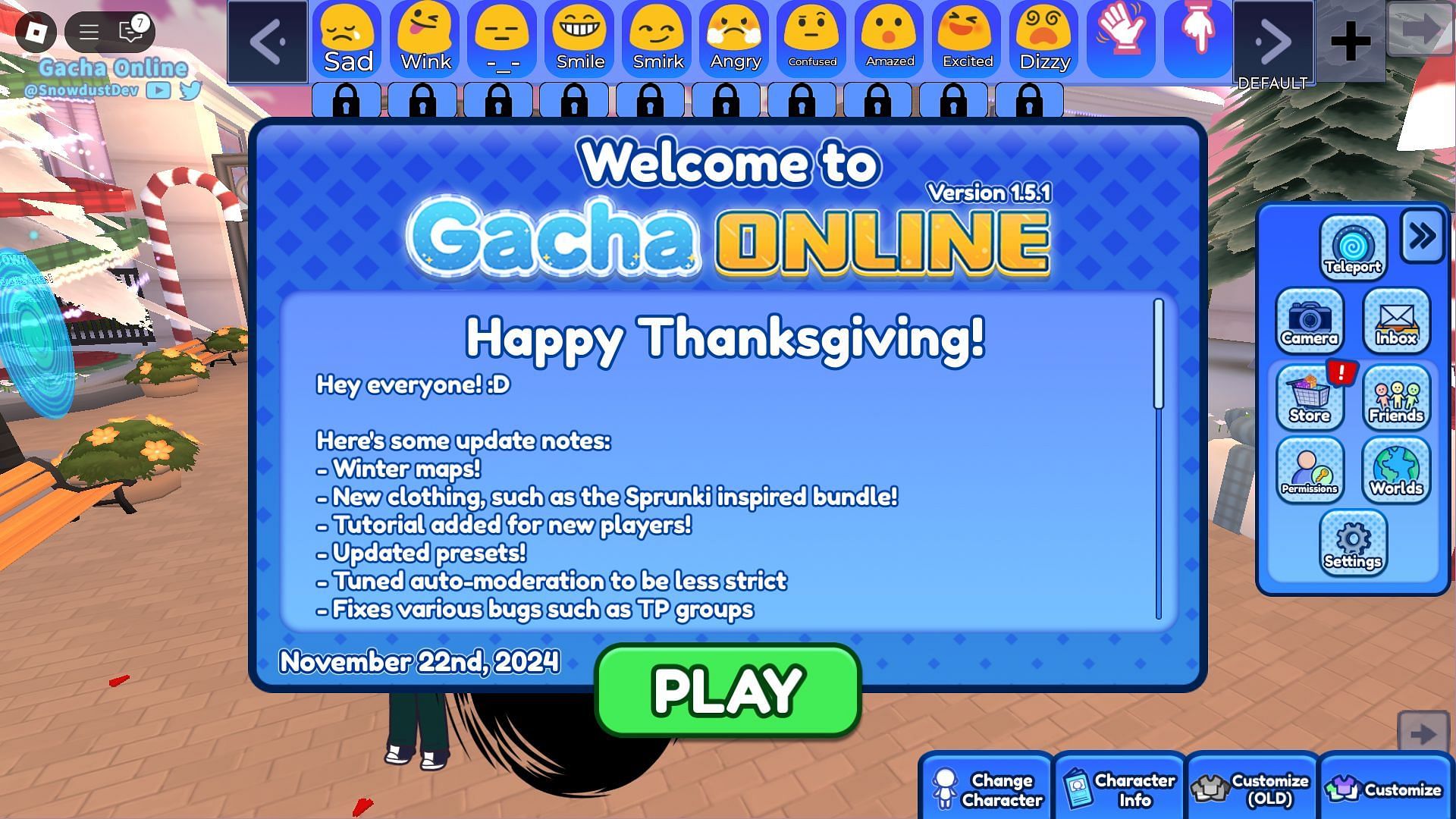 Gacha Online is a roleplaying experience featuring 2D anime-style character design, where you can explore the map and get into hijinks with friends. The game is set to celebrate Thanksgiving with an update of the same name, adding new features and customization elements. Players can now explore the snowy aesthetic of the lobby, which will remain active throughout the winter season.