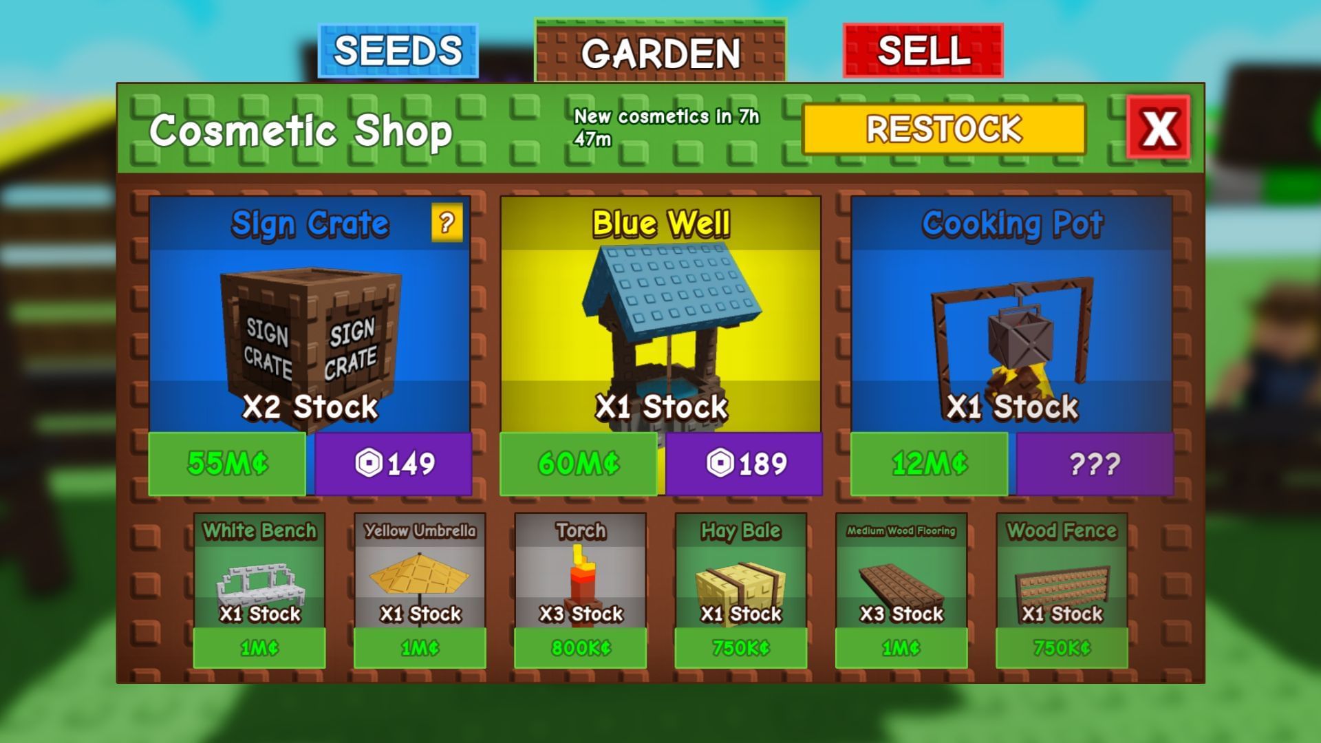 As stated, the Grow a Garden Cosmetic update's main focus is the Cosmetics Shop, where you can purchase various items to further decorate and customize your garden. Below, we have the complete update log with all the details for you to check out.